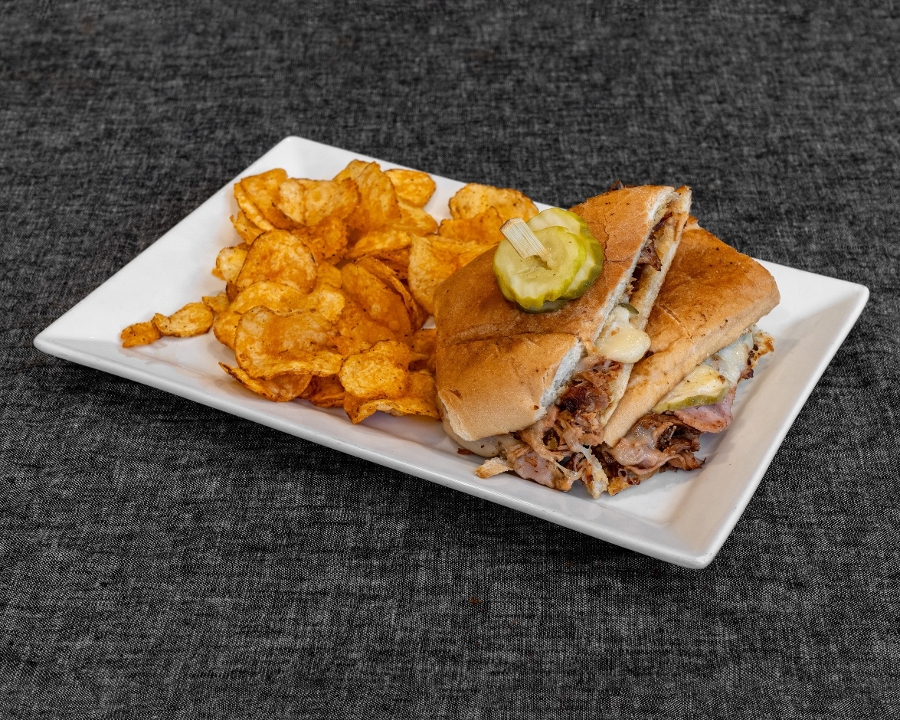 Roasted pork, honey ham, pub mustard, Swiss, pickles pressed Cubano bread